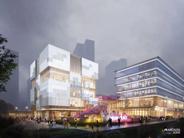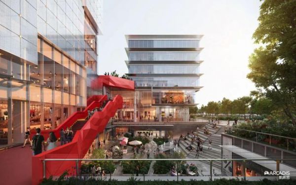 凯谛思Arcadis旗下设计公司CRTKL担纲无锡具区路小站公园项目的综合体商业及写字楼建筑设计,包含写字楼和商业裙楼、魔方主题馆、下沉庭院、室外悬桥,以及屋顶花园的设计工作。在承接原设计总体造型优化任务后,设计团队并未局限于既定范围,而是在精准洞察到项目体量的局限性后,从宏观规划思路出发,剖析本项目与道路对侧建筑体量的关系,提出对城市轴线的响应、写字楼群体整体东西镜像等策略,提升了项目整体价值;原造型优化的任务也因此得以顺利落实。