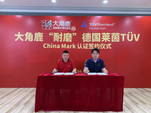 此次大角鹿荣获德国莱茵TüV颁发的“耐磨”China-mark认证,成为建陶行业首家获得此项认证的企业,表明了大角鹿陶瓷砖产品的耐磨性能和产品质量均达到国家建材行业标准要求,同时,大角鹿在超耐磨瓷砖技术领域的全球领先水平以及高品质水准,将对建陶行业的功能性产品评价起到示范与推动作用。