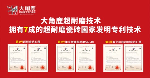 秉持着“让大角鹿瓷砖遍布全球”为品牌愿景,大角鹿聚焦超耐磨瓷砖领域持续迭代升级技术,接连发布独创的第1代超耐磨钻石釉技术、第2代微雕超耐磨钻石釉技术、第3代纳米柔光超耐磨钻石釉技术,不断刷新瓷砖耐磨达到新高度。据悉,大角鹿自研的最新一代纳米柔光超耐磨钻石釉免抛瓷砖关键技术及产业化项目整体技术,已通过国家级科技成果鉴定,项目整体技术达到国际领先水平,已获授权中国发明专利3件,并申请美国和欧盟专利各1件。在超耐磨瓷砖技术领域,大角鹿始终位于行业领先地位,并且实现了核心技术的全球领先,定义了超耐磨技术的全球最高行业标准。