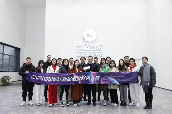 2024年1月16日,搜狐家居华东总经理孟丽、中展智奥经理纪凤波、“2024中国家居新品潮流趋势大典”组委会陈乐佳,以及POD行业观察员陈丹丹、毕庆阳、张柏丞、丰晓、黄彬、张雯、范程成、刘国梁、盛兰、杨雪松、汪萍、张佩纬、王芬娣一行设计师所组成的探访团,在久盛地板有限公司营销副总经理赵京涛先生的带领下走进了公司总部。久盛地板有限公司,作为一家集产品研发、高端制造及全球销售于一身的专业木地板供应商和服务商,公司坐落于现代化花园式新工业园内,构建了高效的生产集群,以实木地暖地板、实木地板、实木复合地板、强化地板全线产品形成全品类布局。