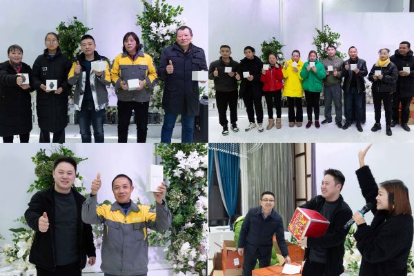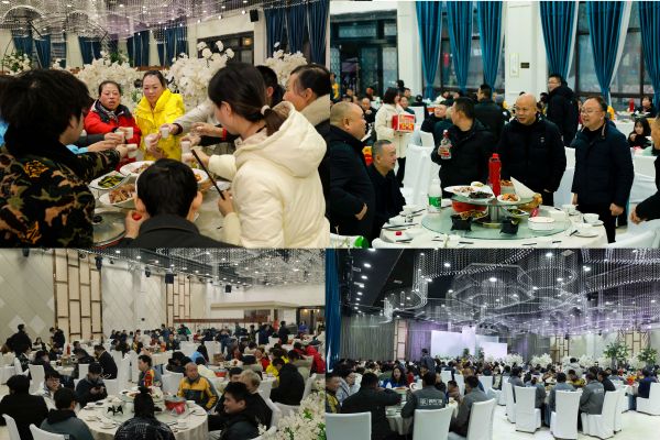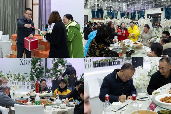 在晚宴上,大家举杯欢饮,祝福声与碰杯声此起彼伏,其中穿插的幸运”红包雨“和惊喜抽奖环节更是掀起了阵阵高潮,场上欢笑不停,掌声不断,充满着一片其乐融融的家宴喜悦氛围。