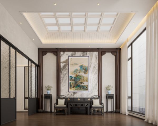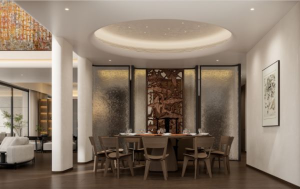 除了设计可以定制化,空间更灵活可变以外,人们对于别墅设计在空间处理上要求更细致明确。境美美学设计院院长汪大锋认为,别墅豪宅需要具备四个功能空间。第一是人文设计方面的,放眼望去,能够传承下来的东西皆是因为背后有强大的文化支撑,一个有文化的家宅会越看越有其韵味。中堂则是凝聚了家宅文化的重要要素,因为中堂蕴藏着家族的过去、现在与未来,中堂文化代表了家族信仰与精神,比如说“厚德载物”的字画是家族对于品德的理解,悬挂在中堂之中,能使家人感受到产生潜移默化的影响。
