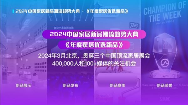 2024年3月6日至3月22日,一场围绕中国家居新产品、新设计、新趋势的发布盛会——“2024中国家居新品潮流趋势大典”将于北京·中国国际展览中心(顺义馆)正式开幕。本次“大典”汇聚中国家居行业众多实力企业的年度首发新品,超过400,000+人次的专业观众,40,000+产业链人士,100+权威媒体,将共享中国家居行业这一新品发布的顶流盛会。“大典”也将成为未来中国家居新产品、新设计、新趋势的发布起点,推动中国家居行业产品力升级,为行业发展注入强劲新动力。