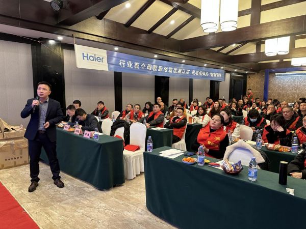 随后,市场总监对24年市场整体策略进行发布,从优化产品结构与配套、丰富门店业态等多个方面发布了助力门店经营快速增长的诸多策略。他还提出:“聚焦零售,共创未来,不能成为一句空话,要切实带动海尔浴霸吊顶终端门店零售能力提升,引爆春季家装市场!”,为此会议提出了“金牌门店俱乐部”养成计划,针对入选门店从建店支持、营销资源投放、活动资源匹配、培训体系搭建等全方位提供支持,助力门店全面发展。