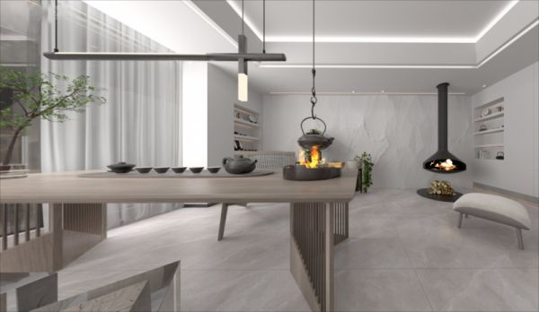 【云天灰】素色砖温润柔和的灰色,简洁干净的设计,叠以原生石材恣意自然的纹理,装扮于现代居室,打造舒适大气、精致优雅的空间氛围。