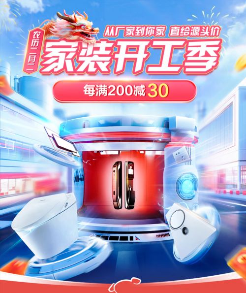 贴合时下流行的家装风格,京东家装开工季联合长葛浴室柜产业带、佛山陶瓷产业带、中山灯具产业带、永康五金产业带等全国数十个产业带的商家,带来百万款源头低价好货。时值龙年,今年家装开工季又恰逢“二月二龙抬头”,很多消费者选择换新水龙头来博得好彩头,像四季沐歌精铜水龙头、华帝直饮水龙头、壹品印象万向冷热水龙头都可以0.1元到手。