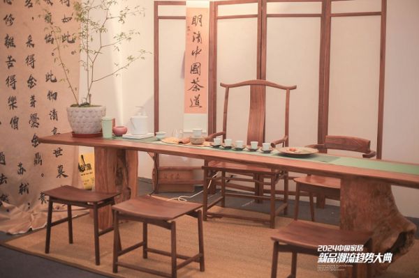 在大典“2024中国家居潮流设计区”,一个独具情调的创意茶空间吸引了众多观众驻足参观。这个由设计师吴冰和金清华共创的设计秀《渡》以黑白为主色调,辅以象征着“茶”的墨绿色调,设计师将传统的茶文化与现代设计完美融合,创造出一个既具有东方美学又不失现代感的品茗环境。这是一个包容万物的文人空间,以虚带实,虚实相生,情意婉转,以茶传情,以物抵心,情景交融。这种设计语言不仅使作品具有高度的视觉吸引力,还寓意着在生活的旅途中,我们需要保持优雅而坚定的姿态,不断前行。