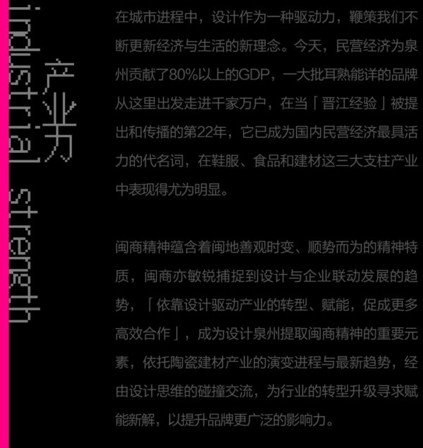 当南方的设计力集体发声,在泉州荡起新的回响,以连接、共享、在地与前瞻为特征,泉州在一铺一镜、神明与烟火之间,萌生着别样生动的当代力。属于城市的设计之声,从泉州特有的「出砖入石」的朴素建筑观里,汲取共享的能量,设计得以有机会作为新的媒介,串联陶瓷、建筑、城市、生活以及与之息息相关的每一个人,设计在南方,邀你一同进入「设计泉州」时刻,续写这座光明之城的当下与未来。