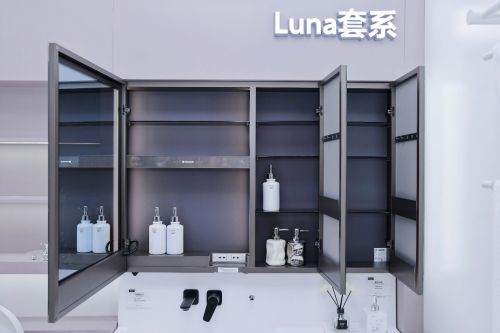 Luna浴室柜则搭载智控透视镜面,镜面可与内灯联动,并根据人体感应在透视与镜面效果间自由切换;同时,内置松下nanoe™X除菌黑科技为护肤品和洗漱用品除菌,守护家人健康;收纳设计方便日常用品分类放置,合理摆放便于家人日常使用。