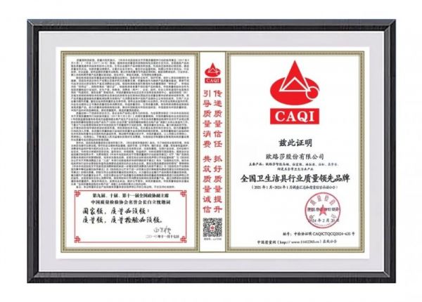 欧路莎卫浴斩获殊荣的背后,是欧路莎对于质量与服务的不断追求,也是社会、行业、消费者对欧路莎品质、实力的认可。