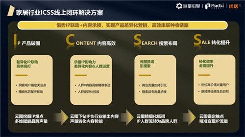 优居提出的家居行业ICSS线上闭环解决方案,通过借势IP联动+内容承接,实现产品差异化营销,高效串联种收链路。