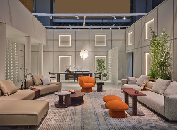 空间采用开放式布局,将每一个品牌区域划分为客厅、餐厅、起居室、书房、茶室等不同功能场景,每个空间由不同产品系列构建出家居空间的落地场景,都汇里通过大胆的色彩对比与产品的设计张力,呈现出前卫有活力的居室空间;而HC28则大量使用柔和的色彩与自然的材质,创造出宁静而温馨的生活场景。