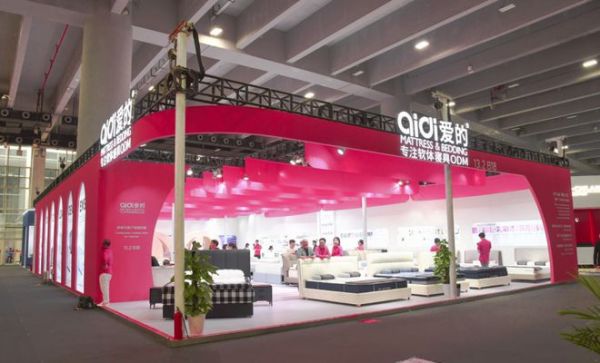 软床主卧展示区:本次爱的展会展示了一系列的软床,有青少年款,成人款以及外销布艺款;其中真皮款软床是本次的重点突破,爱的充分通过自身的研发及生产实力,以优于国标的标准进行打造,同时还推出一些新的软床概念:如软床0胶水,儿童无边款等,贴合年轻人的审美趋势,围绕当下的环保健康,结合时尚的外观满足各种人群需求。
