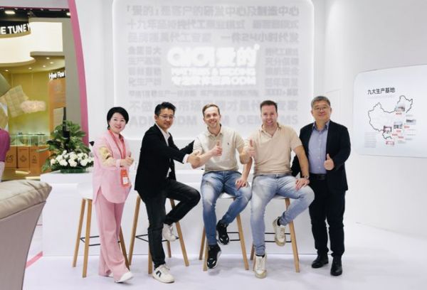 爱的展厅里温度满满,展厅里有很多合作了多年的客户,来到展会他们会熟悉的踏入这块粉红多巴胺的场地,一杯茶水,一块比利时巧克力,一群执着于睡眠健康的伙伴们一起碰撞出新的事业甜蜜火花。