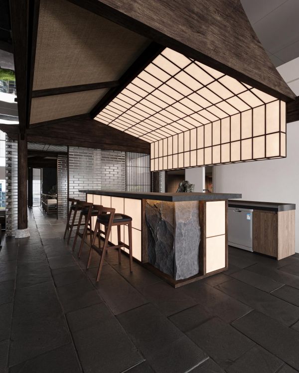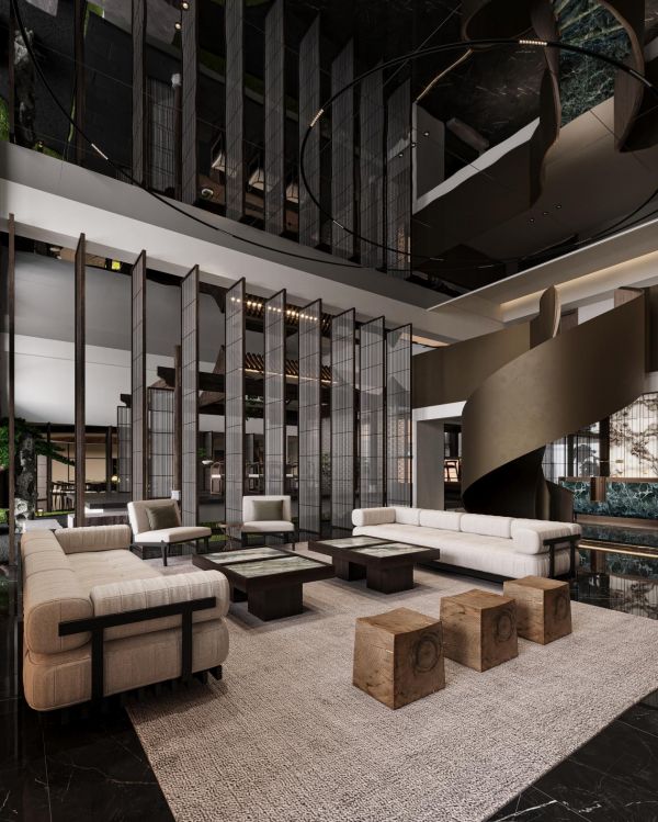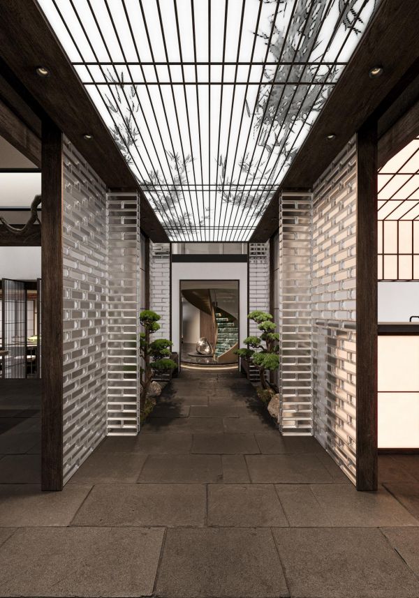 该项目的设计文化背景借用了中国宋代建筑结构与中国传统经典符号与文化,并将现代的设计手法与现代元素进行体块的穿插与结合,让华夏文化的厚度承载整个空间基调的同时,将现代的质感与魅力注入其间。