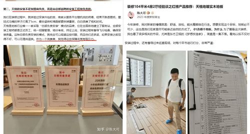 天格地板的安装团队凭借专业、优秀的软硬实力,成功赢得广大用户的一致好评与赞誉。例如,知乎大V陈大可老师选择天格地板的重要原因之一,便是其总部直聘的安装工程师负责安装。她表示:“总部负责安装的模式让我完全规避了加盟商可能带来的问题,而且天格还承诺无理由退换,这让我作为消费者感到非常安心。”亚光亚平安是福设计创始人邹平安老师在接受采访时也谈到:“我一直选择天格,不仅因为产品质量好,更因为他们的售后服务出色。天格的安装工程师是总部直派的,技术水平和专业素养都很有保障,使用的安装设备也是最先进的。”新疆用户姚先生在体验过天格总部负责安装服务后更是赞不绝口,他说:“整个装修过程中,天格的安装最让我省心。他们会主动跟进进度,协调各方衔接,让我非常满意。”他们只是天格千千万万个用户中的代表之一,如他们一般信赖天格总部安装的用户,不胜其数。