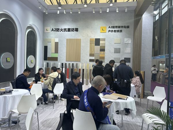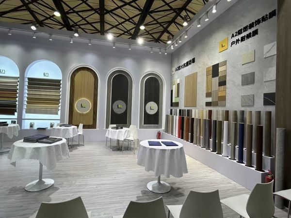 在本次展会上,浪美装饰贴膜展示了众多新品,包括木纹膜、纯色膜、金属拉丝膜、大理石纹理等,以及A2级防火装饰膜、户外耐候膜等,充分体现了浪美在装饰贴膜领域强大的创新能力,为酒店及商业空间的装饰提供了丰富多样的选择。