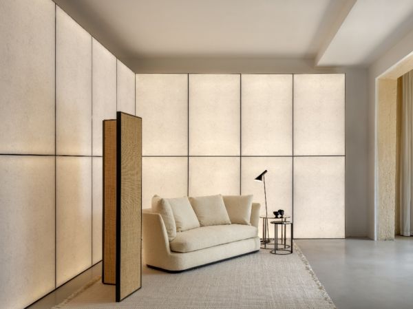 步入空间一层,仿佛踏入了一个充满艺术气息的生活空间。Apollo沙发迷人的曲线和Privatus屏风在发光的宣纸墙面前组成优雅的风景,迎接每一位宾客的到来; Arbiter模块化座椅系统以宽大的尺寸和精准有力的线条,创造出充满戏剧感的区域;房间深处,适用于各个情境风格的Amoenus Soft旋转沙发装点着素雅的楼梯走廊空间;当视线移至二楼,意大利制造的经典风范Lucrezia沙发占据中庭空间焦点,让宾客准备体验两个不同场景。 右边房间里优雅大方的Febo床静置一隅,Sidus桌子和Febo扶手椅点缀在旁,描绘出悠闲和工作的平衡生活。发光的画廊场景也再次出现,带来了2024新品Florius沙发和Soleide边桌的预览,是继巴黎发布后首次在亚洲展出。最后一个空间在圆弧形的飘窗下呈现出客厅、茶室和餐厅的场景,邀请宾客在Lilum沙发和Tesaurus柜体感受有序和松弛间的交融。