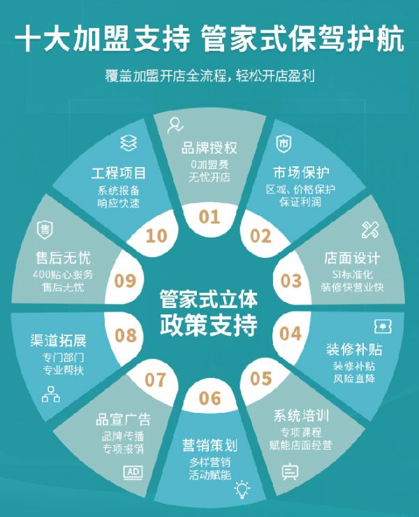 不仅如此,惠达卫浴还为新商准备了十大加盟支持,管家式服务保驾护航,助力经销商轻松开店盈利。加盟惠达卫浴,经销商不仅可以得到品牌授权、市场保护、店面设计、装修补贴、系统培训、营销策划、品宣广告等方面的支持,还能够渠道拓展、工程项目、售后无忧的强有力赋能。惠达卫浴希望经销商能够毫无后顾之忧地在终端市场开疆拓土。
