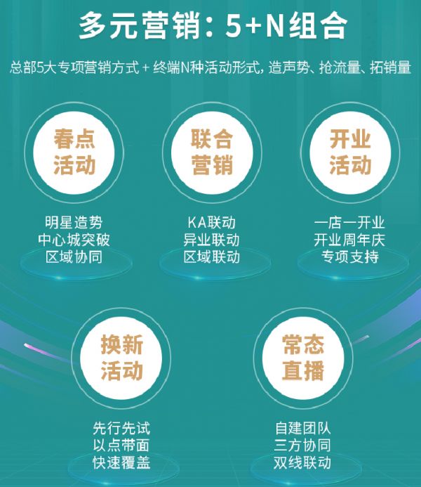 为了能够让经销商快速打开市场,惠达卫浴专为4月加盟的新经销商,准备了5大专项营销方式+终端N种活动形式的营销助力模式,将通过明星造势、中心城突破、区域协同的春点活动,KA联动、异业联动、区域联动的联合营销,一店一开业、周年庆、专项支持的开业活动,先行先试、以点带面、快速覆盖的焕新活动,自建团队、三方协同、双线联动的常态直播活动,构建覆盖全国、贯通全年、有节奏的营销造势活动,助力经销商抢流量、拓销售,快速扎根终端。