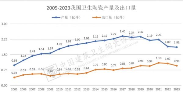 近日,中国建筑卫生陶瓷协会发布“2023年全国建筑陶瓷、卫生洁具行业运行概况”(以下简称“报告”)。据统计,2023年全国卫生陶瓷产量为1.86亿件,较2022年小幅下跌1.59%;全国卫生陶瓷出口量为9592万件,较2022年下降10.07%,出口目的地需求不足、产能向外转移是主因之一。报告预测,旧改、消费分级、整装模式、智能化/健康化/功能化已成为建筑陶瓷和卫生洁具行业的发展趋势。