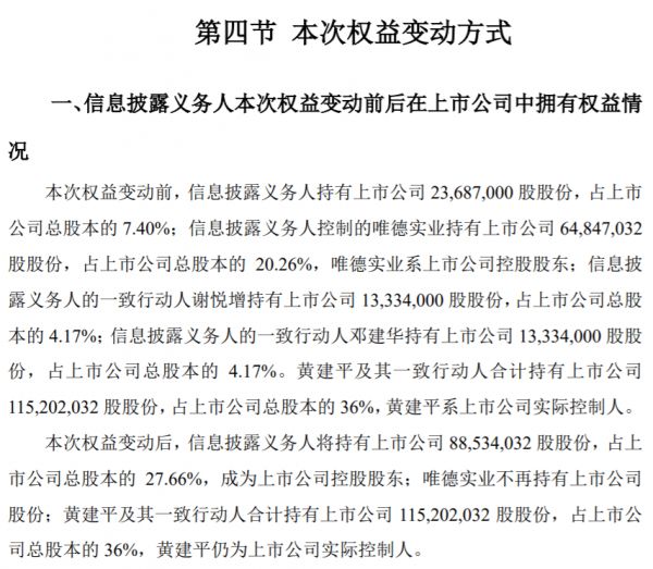 2024年4月3日,四通股份(603838.SH)公告称,公司控股股东广东唯德实业投资有限公司与公司实际控制人黄建平签订了《股份转让协议》,唯德实业拟将其持有公司的 64,847,032 股股份(占公司总股本的 20.26%)全部转让给黄建平,本次股份转让的总价款约4.05亿元。据悉,黄建平为马可波罗控股股份有限公司董事长,另外还实际控制26家不同业务的公司,均与家居建材行业关系密切。