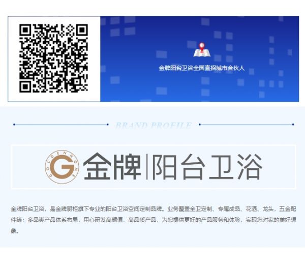 金牌阳台卫浴,与加盟伙伴勠力同心,携手共富。本次金牌阳台卫浴全国招商会,将为加盟伙伴带来更加完善的招商加盟政策,更高能的帮扶力度,共同探索创富新模式。更多详情可扫码关注微信公众号,后台咨询小编,或拨打下方财富热线进行了解,敬候您的来电!
