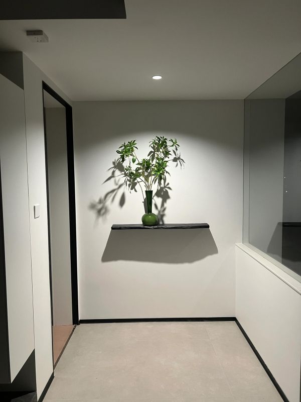 瓷砖轨道灯:格栅灯氛围感更强,照明主要来自泛光灯。