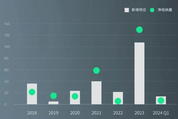 2023年,广州物流仓储供应达到近5年新高。根据世邦魏理仕的数据报告,全年供应量达到107.2万平方米,近五倍于2022年的数值,使空置率在上半年曾一度被推升到高于20%的水平。