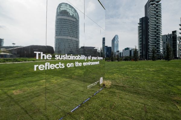 Electrolux EcoLine Hub位于BAM - Biblioteca degli Alberi(“树斋”公园)内。这是在经历近年广泛的城市建筑更新后,诞生于米兰的城市绿色脉动之心。EcoLine Hub的外观被设置为一个大型的平行六面体,通过镜面墙与周围环境完美融合,产生强烈的视觉吸引力,令人不由自主想要走进装置一探究竟。