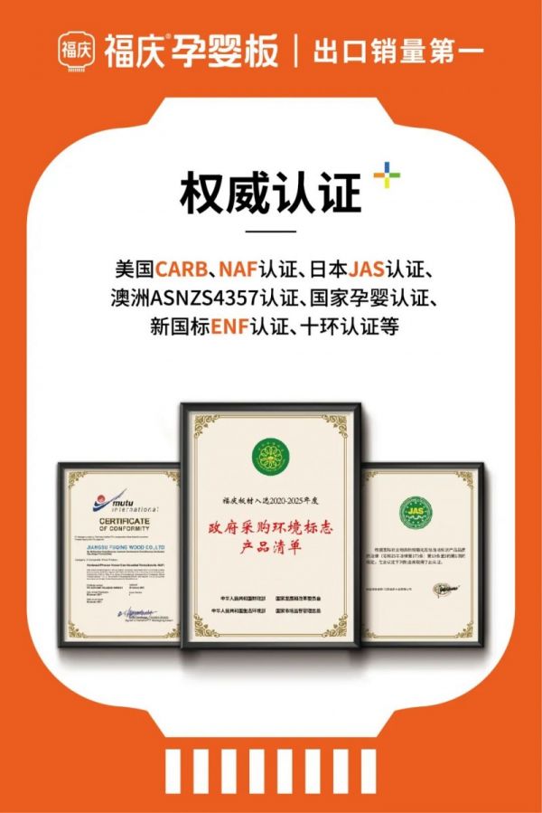 家居建材的环保也是打造理想小家的重要基础,作为行业首家开发针对孕妇、婴儿等敏感人群所使用的健康板材,福庆孕婴板获得国家孕婴网官方产品认证,符合孕婴24h安全标准,优于现行国标3倍。