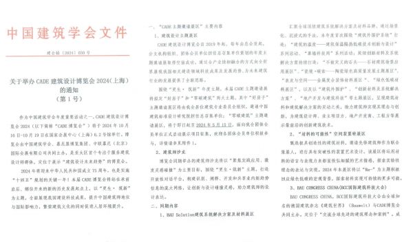 以下为中国建筑学会关于举办CADE建筑设计博览会2024(上海)的第1号通知原文: