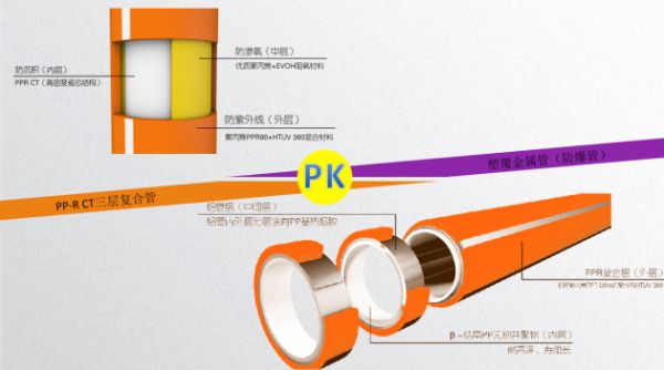 内层采用北欧化工公司最新推出使用的β-结晶PP无规共聚物(PPR CT),它具有在较高温度下使用寿命长的特点。