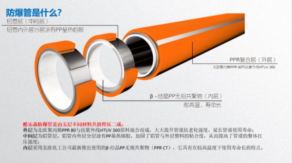 酷乐森防爆管是由五层不同材料共挤焊压二成: