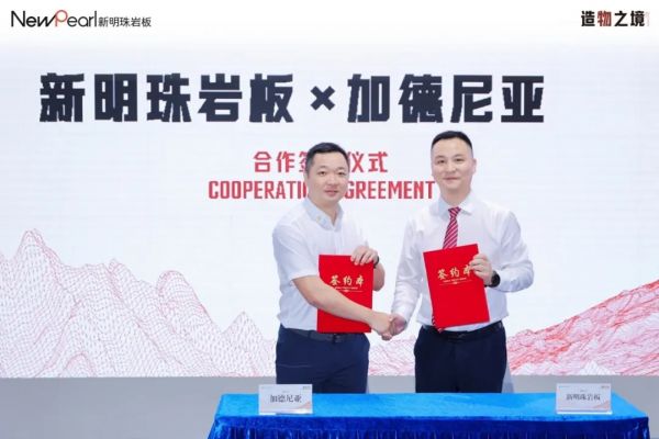 新明珠岩板与加德尼亚强强联手,以高值岩板产品占领高端消费者心智,持续完善高端岩板生态圈,构建多元化国际化的产品体系和销售通路,赋能进口品牌,加速进口岩板市场培育,共享高端岩板生态圈红利。