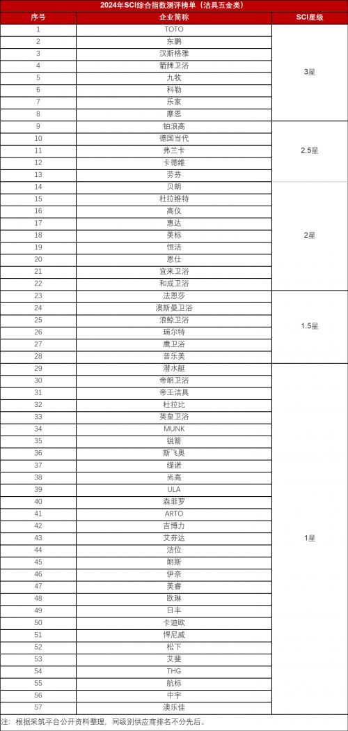 东鹏卫浴再获三星荣誉!2024年SCI综合指数测评榜单揭晓