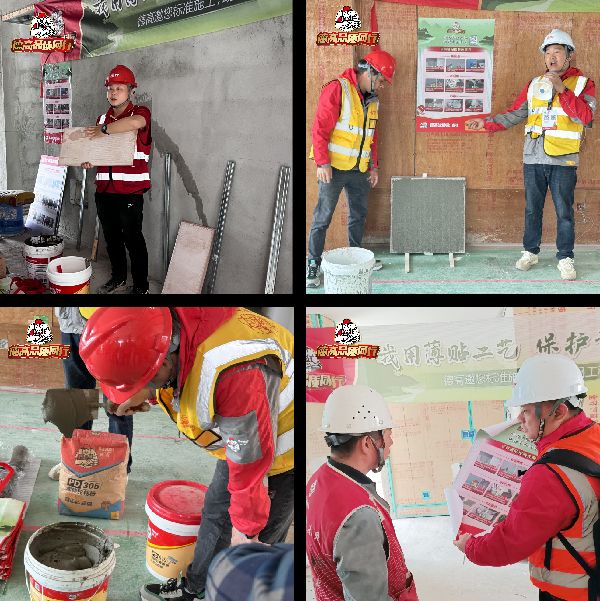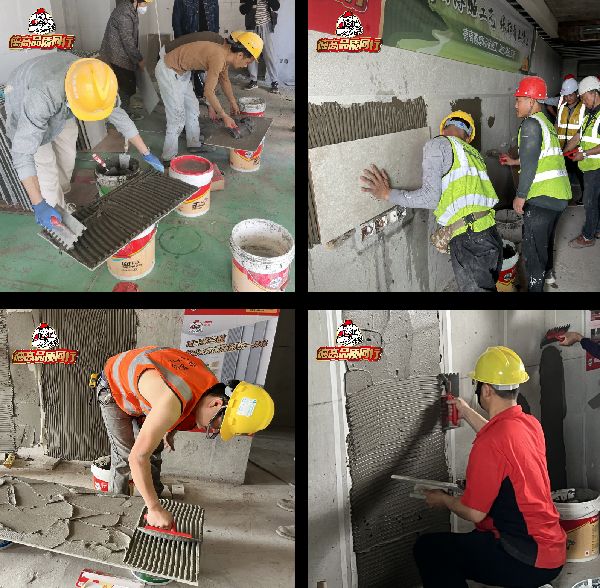 活动继续发挥厂商一体化的力量,坚持以标准的施工服务技能,演示“瓷砖胶施工九步法”,在轻松活跃的氛围下互动交流瓷砖胶满浆秘诀, 从齿形刮板的选择、 基层砖背双面瓷砖胶梳齿 、充分揉压等细节提高满浆率,降低贴砖空鼓率 ,推动师傅们贴砖技能,向更加标准化的方向前进。