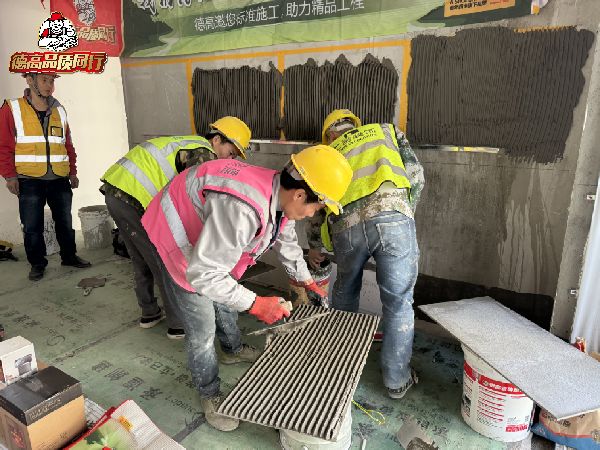 随着国家对建筑品质要求的提高,新型建造工艺、不同类型瓷砖开始普及应用,导致在瓷砖铺贴中,瓷砖铺贴成为较复杂且容易出现问题的分项工程之一,想要贴砖“零空鼓”,除了性能优异的铺贴材料,还需要规范的施工工艺!“品质同行”活动中,德高服务团队充分结合在项目数字化巡场服务中遇到的影响铺贴质量的问题与现场项目管理人员和施工人员展开深入交流,覆盖了从环境气温、产品存放、施工基面、材料搅拌、瓷砖铺贴工艺等可能导致瓷砖空鼓脱落的全部节点,并通过“三看三不三关注”管理口诀,大大提高工程质量管理效率。