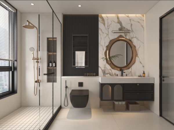 沿墙展开的L型布局实现卫浴三分离,洗漱区墙面用奢石点缀,克服白色空间的刻板印象,于白色之中自带灵动之感,让生活的每一帧都定格成浪漫,以温婉的设计语言,描绘诗意的生活场景。
