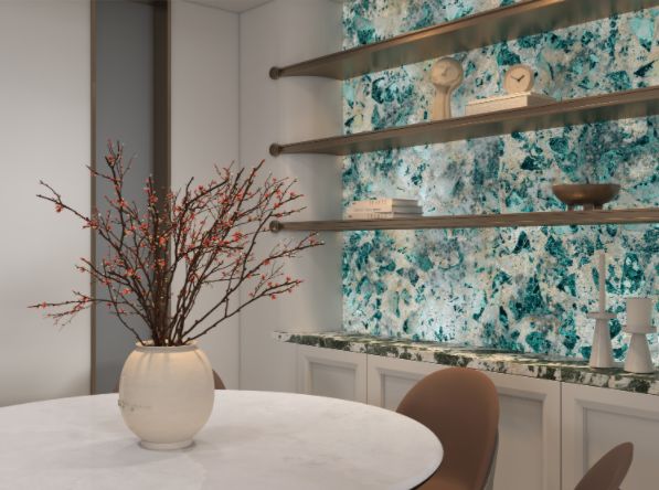 奢石充满了整个空间,或大面积通铺,或小面积点缀,在这里,优雅与知性无时无刻不在悄然上演,尽显生活美学。欧若拉精工奢石以奢石高定将细致入微的高级质感,润物无声地沁入生活日常之中,奠定整体的温情之感。