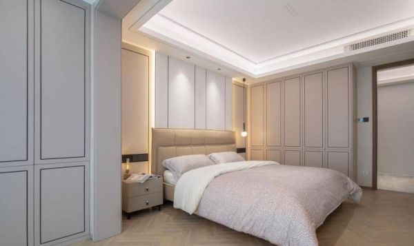 最后,卧室是休息和私人空间,大平层灯光设计应该以舒适和温馨为主导。在卧室中,选择柔和的暖色调灯光,有助于放松身心,帮助入眠。同时考虑到卧室的多功能性,可以设置可调光的床头灯或壁灯,以满足不同场景下的照明需求,如阅读、休息或观看电视。考虑夜间起夜,也可以在床头柜下方安装感应式灯带或地脚灯,保证夜间安全的同时不影响后续睡眠。