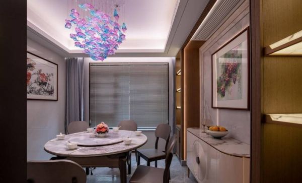 其次,餐厅是家庭聚餐和社交的重要场所,恰到好处的大平层灯光设计能让用餐体验更加愉悦。在餐厅中,选择具有调光功能的灯具,可以根据不同场合调整灯光明暗和色温,营造出浪漫的氛围或是轻松的用餐氛围。