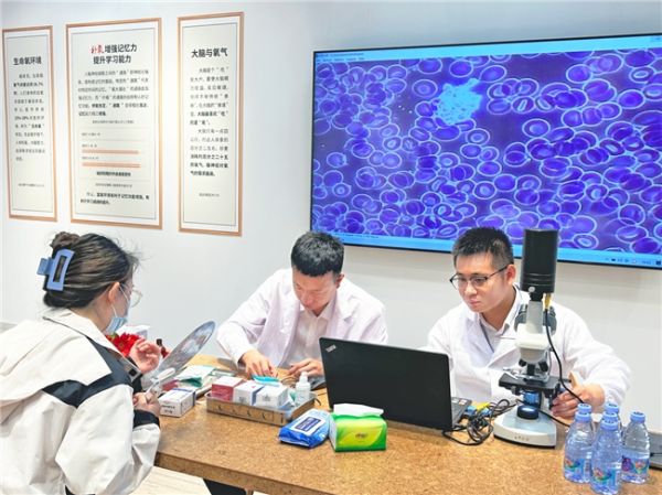 很多人处于缺氧而不自知的状态,血氧实验的显微镜头下形态各异的血红细胞直接展现了参展观众的不同身体情况,吸氧后血红细胞的形态饱满度和活跃度都有所提升,精神状态更佳,可视化地展现了富氧对体内细胞的改善作用。参观者纷纷驻足在氧吧体验间前,跃跃欲试开启自己的吸氧初体验。得高补氧学习桌的弥散式吸氧方式、人机分离的设计,也成为观者们的热点讨论话题。