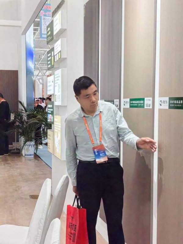 隆饰板材展位现场人头攒动,热闹非凡,目光所及无一不啧啧称奇,深入了解后更是赞不绝口。面对来往的参观者,隆饰板材的工作人员以饱满精气神迎接每一位客户,并且引导参观者近距离、直观地体验产品功能,用专业技能和优质服务解决客户疑难点。