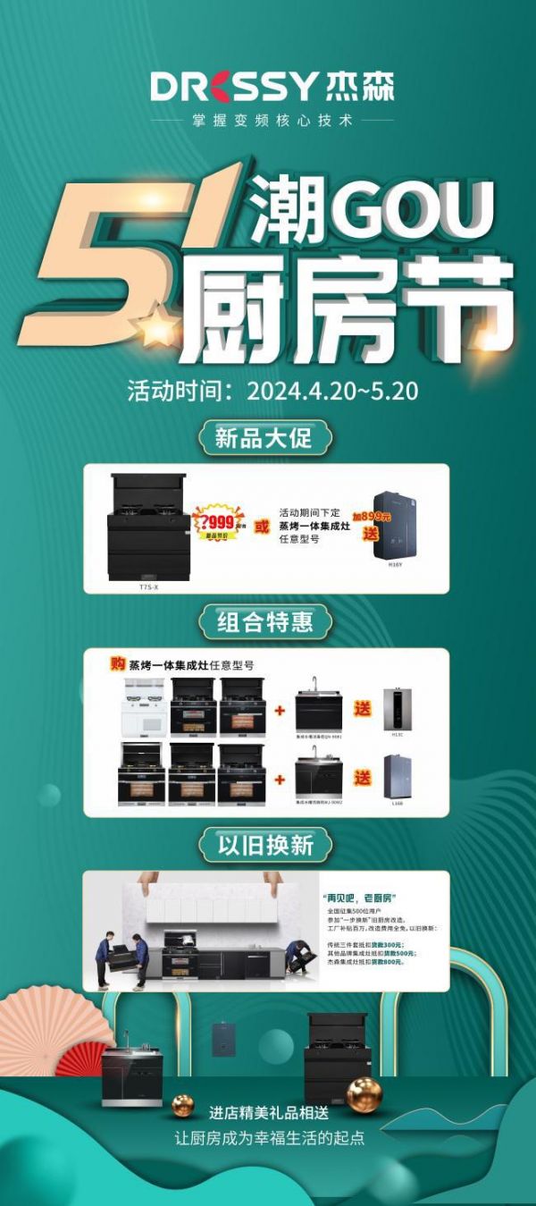 这个春季,杰森集成灶“51潮GOU厨房节”已进行至中期,倾力为消费者准备的集成套系化产品不仅涵盖海量新品和超值折扣,还能全方位满足你对厨房的憧憬。参与杰森集成灶“51潮GOU厨房节”,不用担心面对令人眼花缭乱的选择,也不必担心无所适从,杰森为你精选高级优质、极具性价比的一站式整套厨房产品方案。