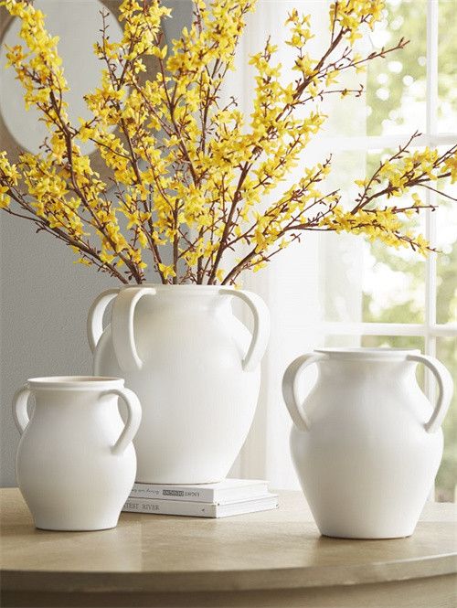 Terry双耳陶瓷花瓶,圆润洁白的瓶身,饱满大方,配以细长优雅的瓶颈,线条简洁流畅,彰显现代气质。