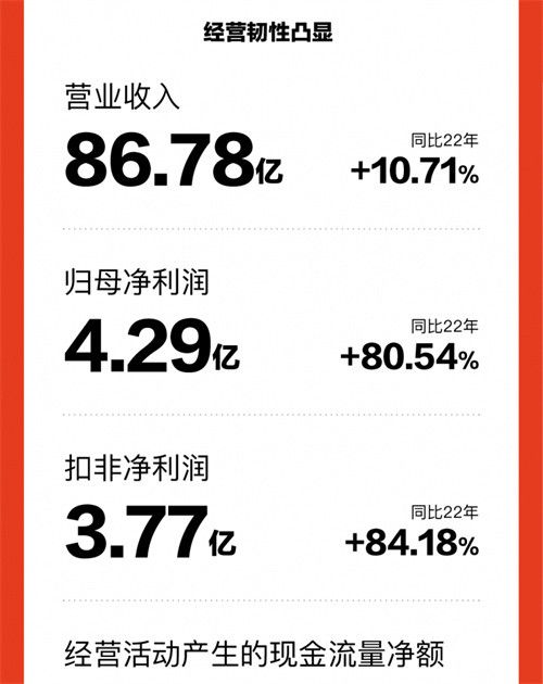 4月25日,喜临门(603008.SH)发布2023年年度报告。年报显示,公司实现营业收入86.78亿元,同比增长10.71%;归属于上市公司股东的净利润为4.29亿元,同比增长80.54%;经营活动产生的现金流量净额达12.53亿元,较上年同期增长49%;毛利率达34.37%,同比提升1.96个百分点;基本每股收益1.11元/股,同比增长79.03%。