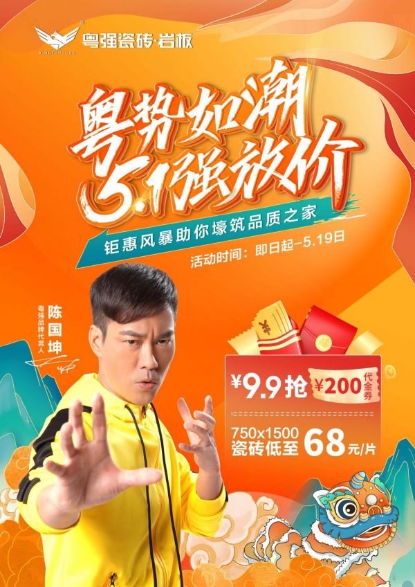 粤势如潮 粤强瓷砖5·1强放“价”, 9.9抢200代金劵 家人们快冲呀!