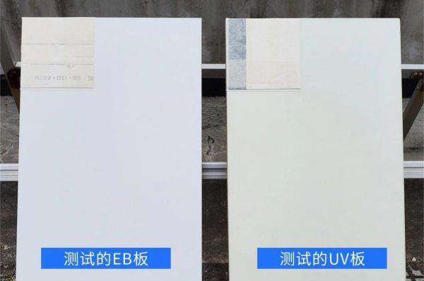 将测试的志华EB四耐板和一块已知的同色UV板放在一起,遮挡一半暴露一半,放在太阳光下进行自然曝晒。经过一段时间的暴晒后,你会发现UV板明显变黄。此时再观察测试板,其黄变情况明显优于UV板。(小贴士:选用浅色板材进行测试效果更佳哦!)