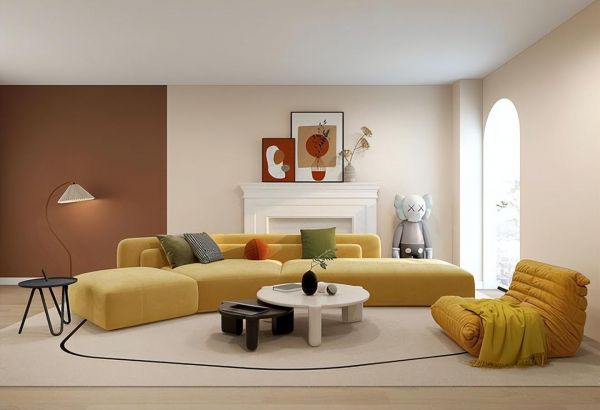 黄色是一种金子的色彩,是一种太阳的创造。梵高的向日葵满怀炽热、灵气与智慧。这种浓烈的黄色,为空间带来跃动的灵动感,搭配米色等柔和的色系,色相间交汇融合,减弱空间的生硬感,点亮生活的同时,给人以愉悦的感受。